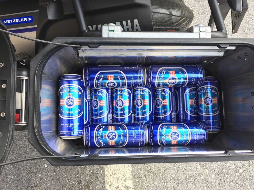 Lebensmittel, die kühl sein sollen, kommen an meinem Mopped auspufffern in den rechten Koffer :!: (Dieser Tip ist gratis ;) )