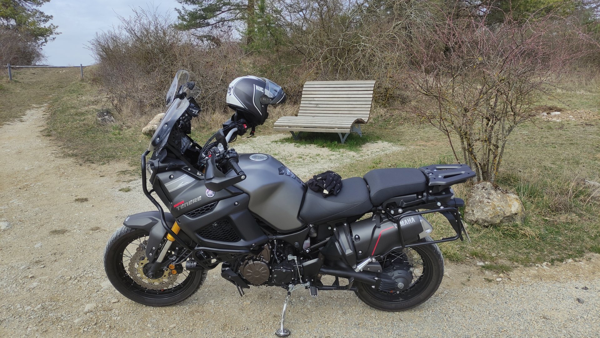 Wobei ich mich bei einem Blick auf meine Dicke korrigieren muss. Der Halter hat auf beiden Seiten den gleichen Abstand, also ist streng genommen die rechte Seite weiter außen, als sie sein müsste. Die Koffer hängen dadurch symetrisch und sind gleich groß. Aber sieht man ja an meiner Reaktion, so ...