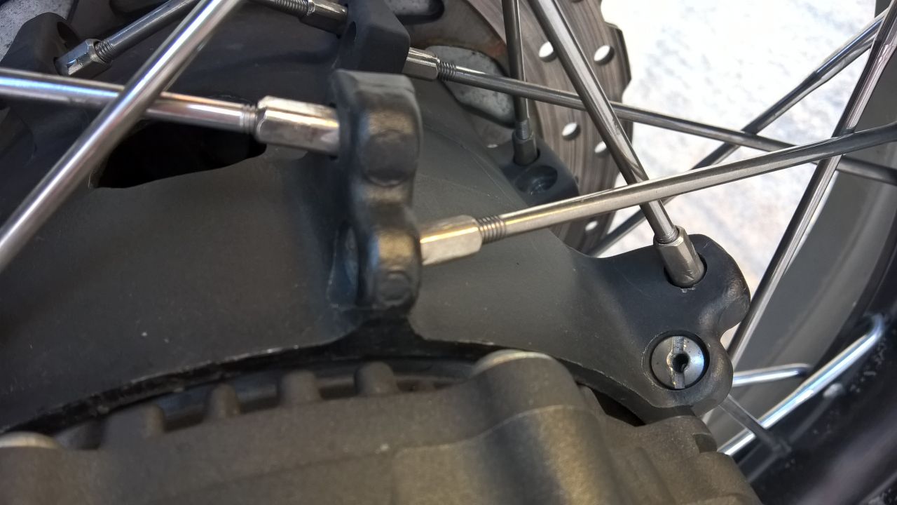 Hatte noch 2 dabei, daher konnte ich weiter fahren. Ein freundlicher Honda- Händler in Thusis ( Schweiz ) hat alle Speichen kontrolliert, da ich keinen Drehmoment- Schlüssel dabei hatte.