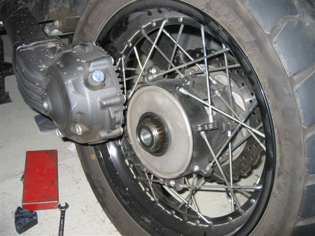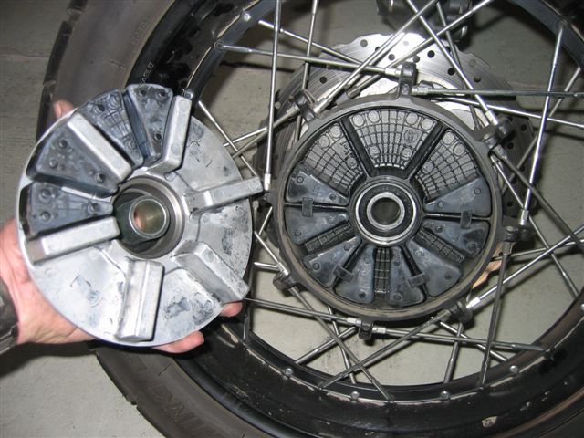 Die alu Scheibe muss also raus aus die Kardan , und die geht ein bisschen schwieriger aus die kardan als aus dass Rad mit die Gummi Klotzen.
