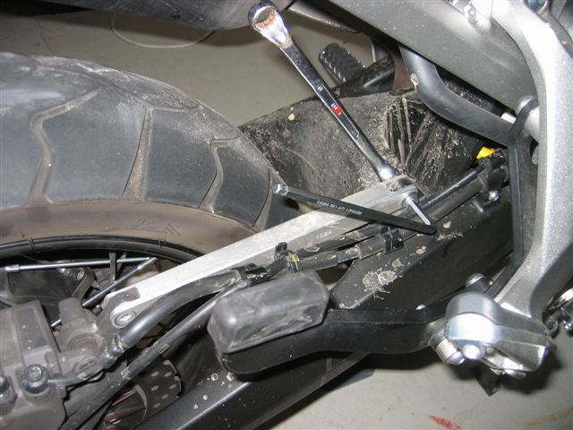 2.) Nachdem du die Mutter #5 angezogen hast, lockere nochmal die Schraube #4 um die Spannung in der Schwinge rauszunehmen. Dann natürlich wieder festziehen.