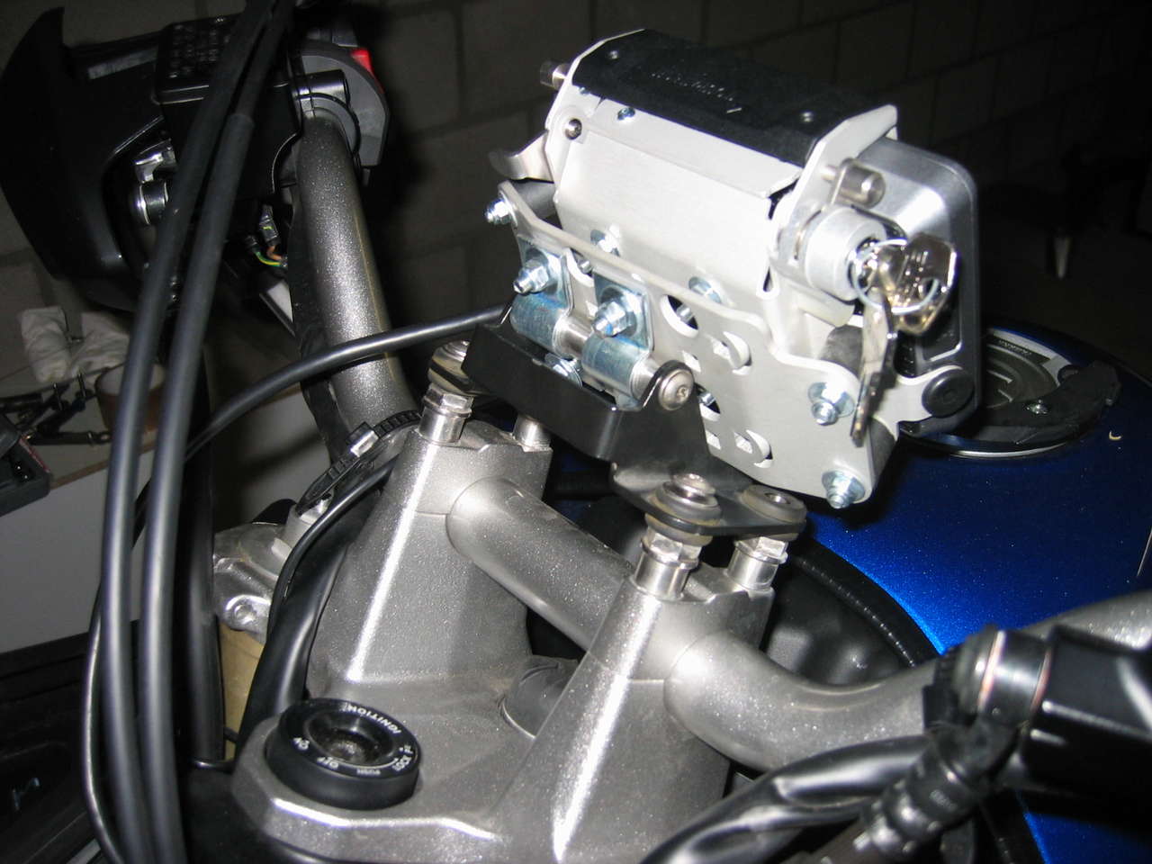 Ich hatte mich beim Kauf des Motorrades für die Halterung von SW-Motech für Montage über der Tachoeinheit entschieden.