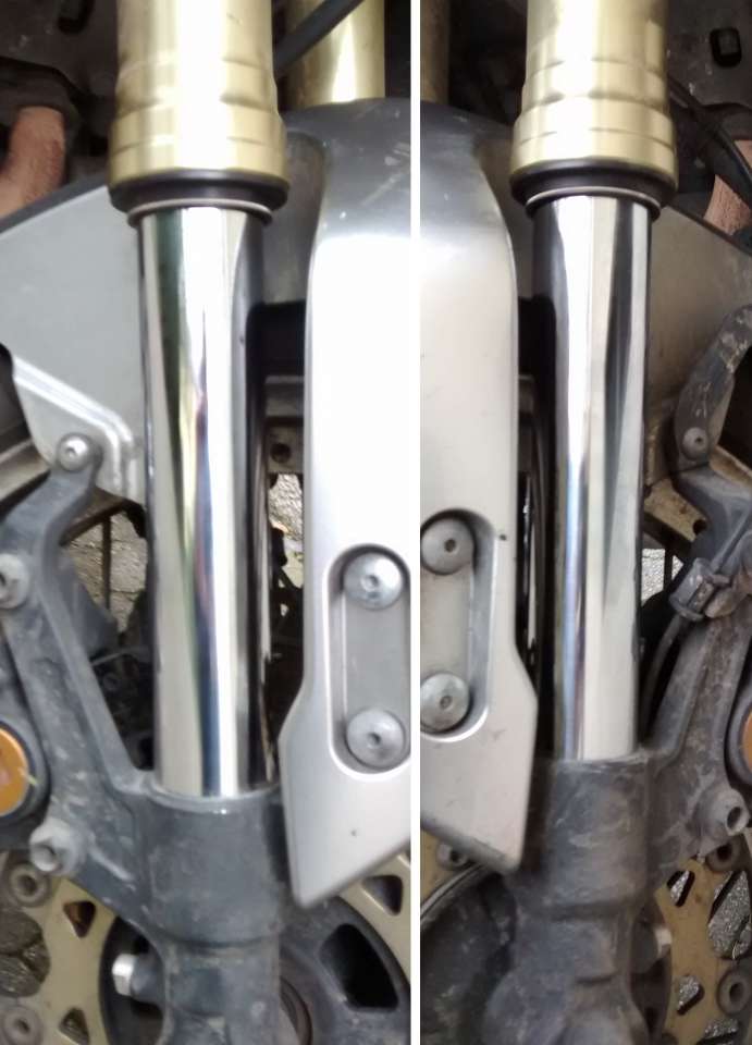 und ich kann TJoe bestätigen, unter den Touratech-Stütz-Strümpfen sehen die Gabelholme wie neu aus.