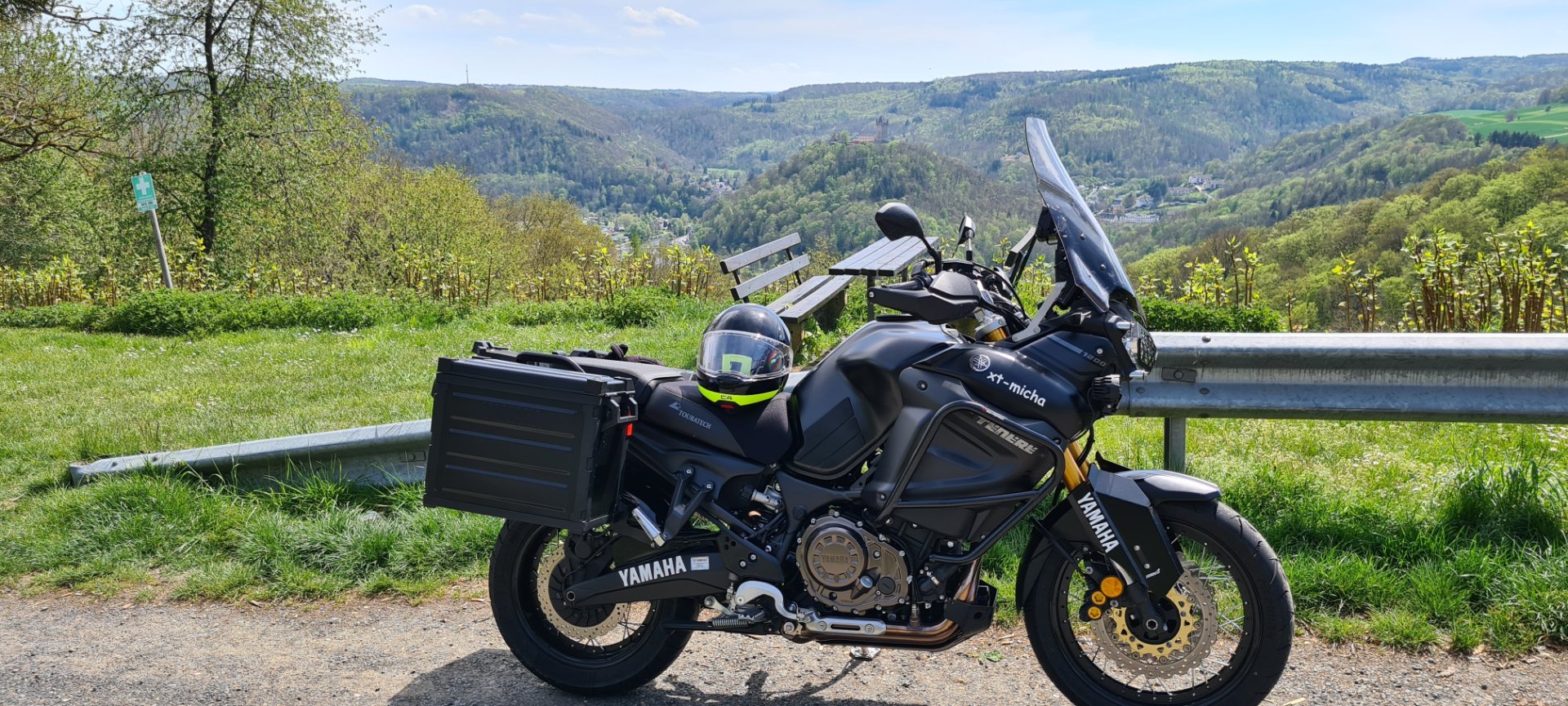 Möppi auf dem Parkplatz abgestellt und ein paar Meter dem Wanderweg gefolgt, wie das so ist mit Möppiklamotten wandern......