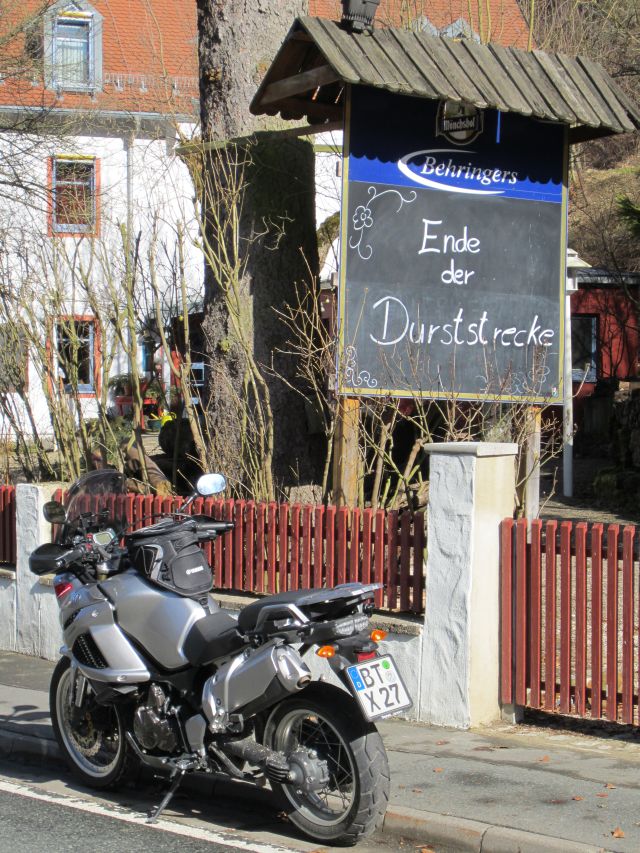 blauer Himmel über Franken, trocken, gefühlte 18°, heute hat mich nix mehr gehalten. Druck aufs Knöpfchen, sofort blubbert sie vor sich hin, als wäre 8 Wochen nichts gewesen.