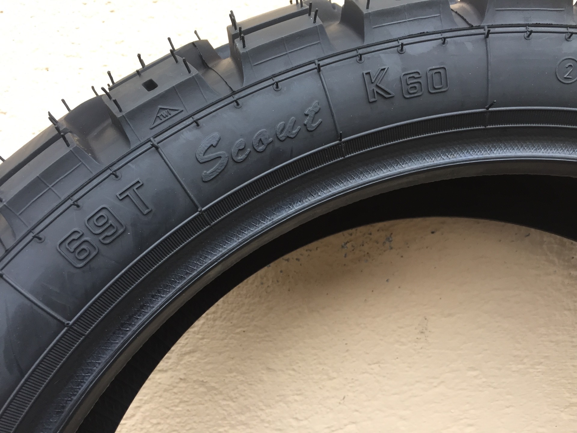 K60 Scout. Dieser dürfte als erstes wegen des breiten, umlaufenden Mittelblocks - und vielleicht härterem Gummi - mehr Lebensdauer für Reisende bieten. Die äußeren und äußersten Blöcke bieten etwas mehr Grip auf weicherem Untergrund, sind aber bezüglich Kurvenwetzen nicht so günstig. Für den vorderen K60 Scout gilt Ähnliches.