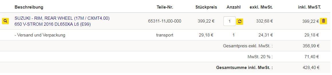 Nun gibts noch eine "dickere" V-Strom (Suzuki DL1000 V-Strom / 228kG) , ob da die gleiche Felge (Nummer) verbaut ist?