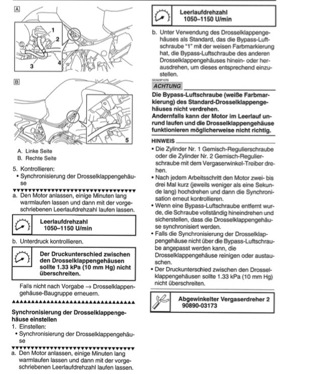 Im Werkstatthandbuch wird nicht nur die EINE Bypass-Luftschraube erwähnt, über welche synchronisiert wird, SONDERN EBEN AUCH: die BEIDEN Gemisch-Regulierschrauben von Zylinder 1 und 2, an welchen ebenfalls gedreht werden soll.