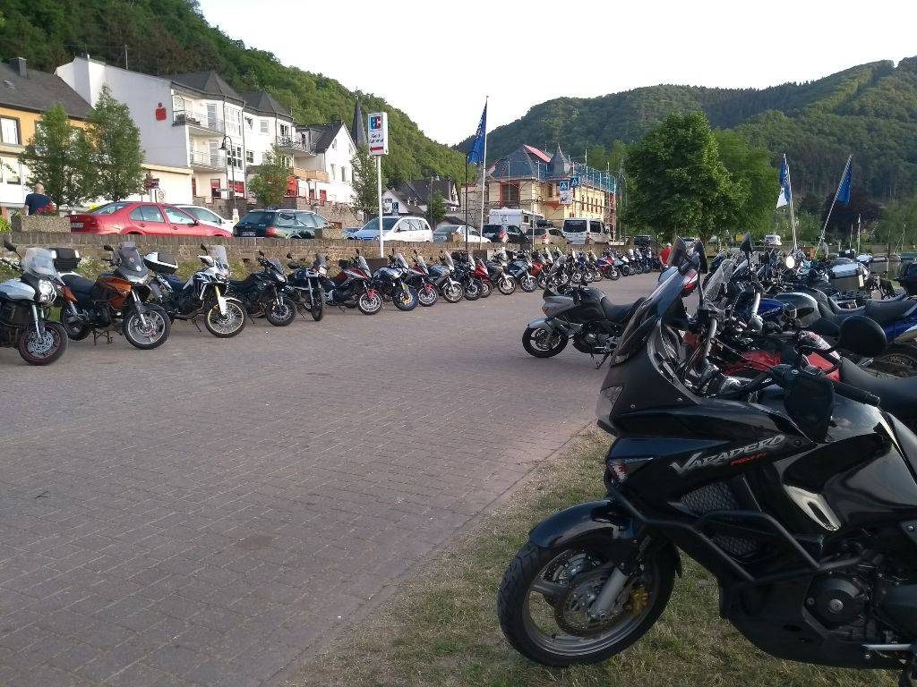 Aha, eine unbekannte Sichtung um zwei Ecken. Ein Verwandter, der mit Motorrädern eigentlich nichts zu tun hat, spielte mir dieses Bild von der Mosel (wahrscheinlich vom Varadero-Treffen?) zu, auf dem bei genauem Hinsehen sogar ein einziges "schönes" Motorrad