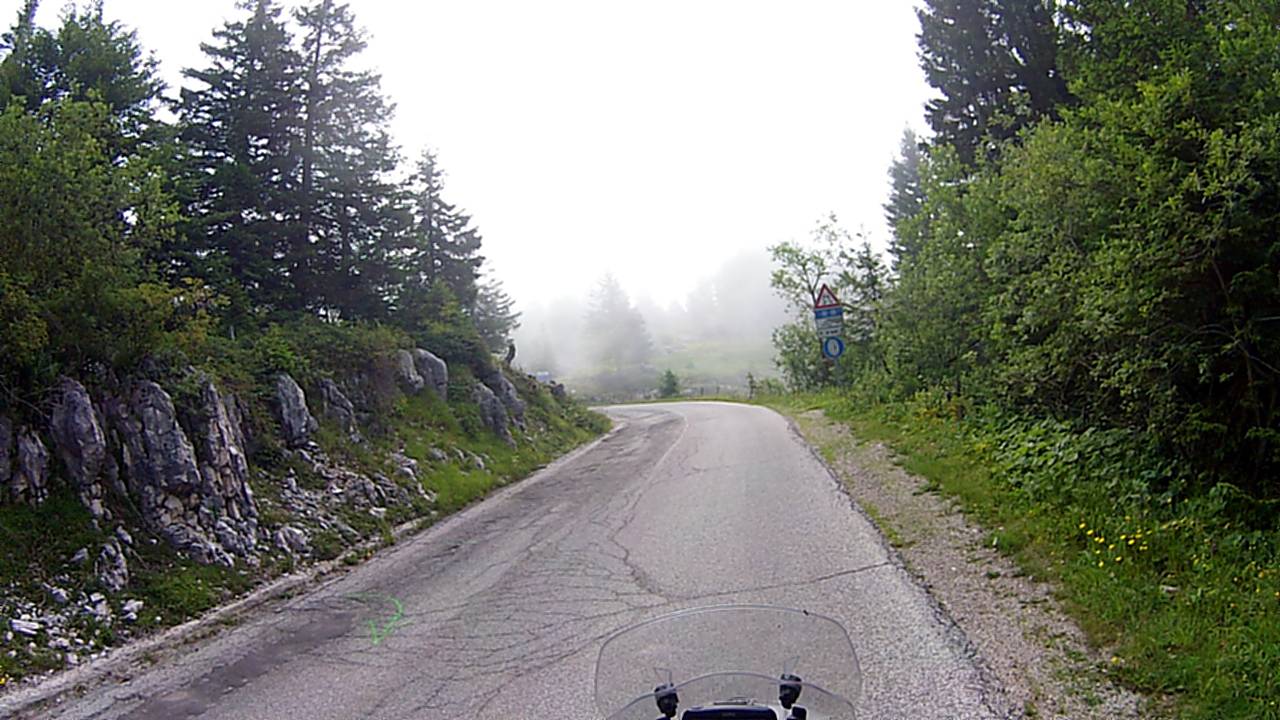 Heute ging es durch die Hochebene d. Sieben Gemeinden. Leider Nebel in den Bergen – nix gute Aussicht.