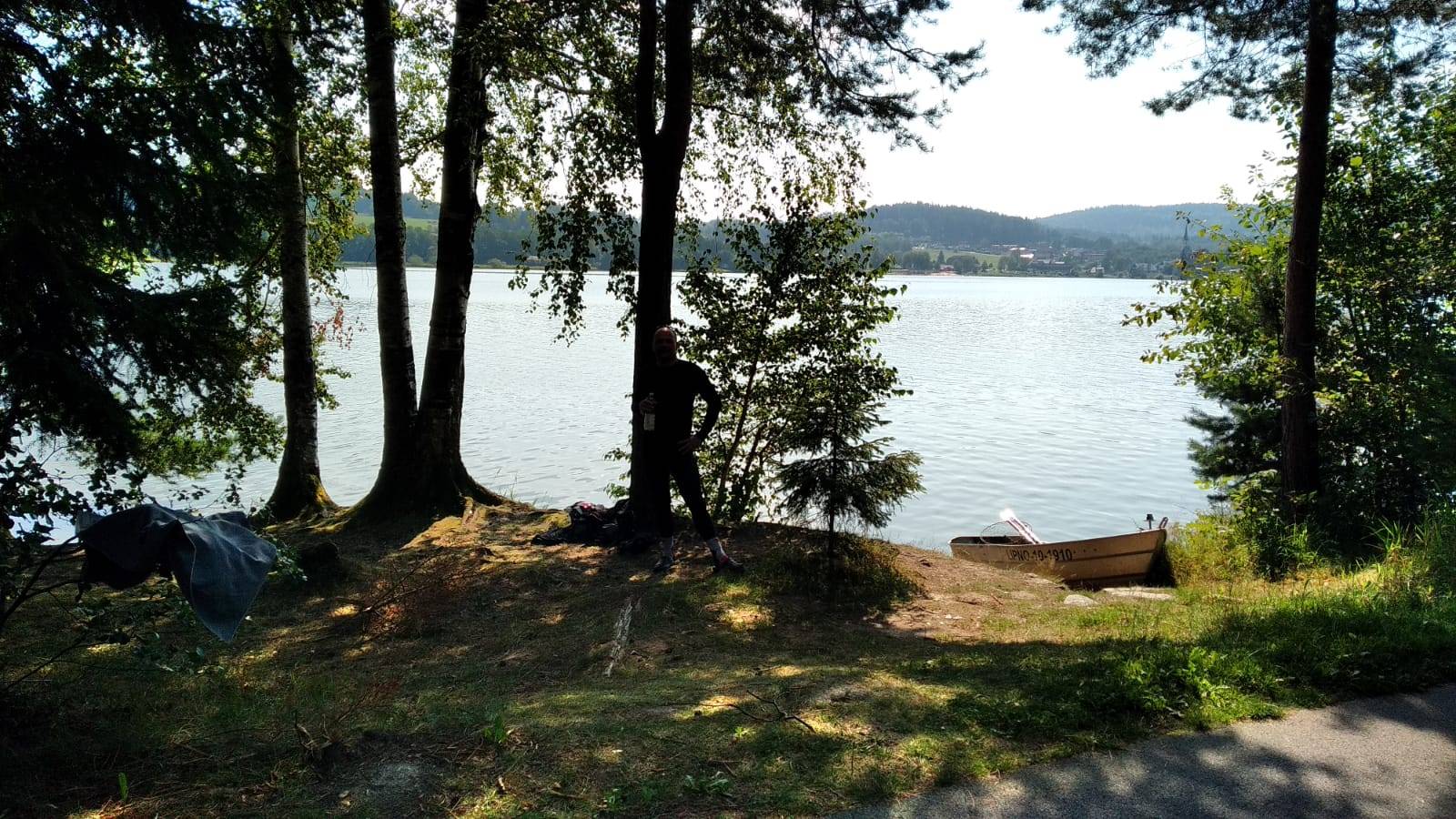 Am Lipnow-Stausee/CZ bogen wir dann mal eben in den Wald ab, da wir feuchte Schlüpper hatten. Nein... :lol: nicht davon. Ich fuhr mitten durch einen Kleingarten und Rene irgendwie durch den Wald hinunter zum Stausee. Klamotten aus, ab in die kühle Brühe. Rene hatte dann noch eine tolle Idee. Tomaten-Fisch aus der Dose :kotz: die 5 Tage auf der Auspuffseite dahinschmolz und nunmehr feierlich geöffnet wurde. Wer "Surströmming" kennt, weiß in etwa was ich mit ansehen musste :krank: Aber er hat die 2 Dosen weggeputzt :daumen: (Pfui Deibel)