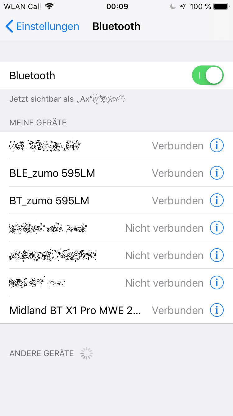 So hat das iPhone tatsächlich gleichzeitig 3 Verbindungen (bei mir sogar vier, nämlich eine weitere zur Apple Watch), 2 davon zum Garmin und eine zum BTX1 Pro.