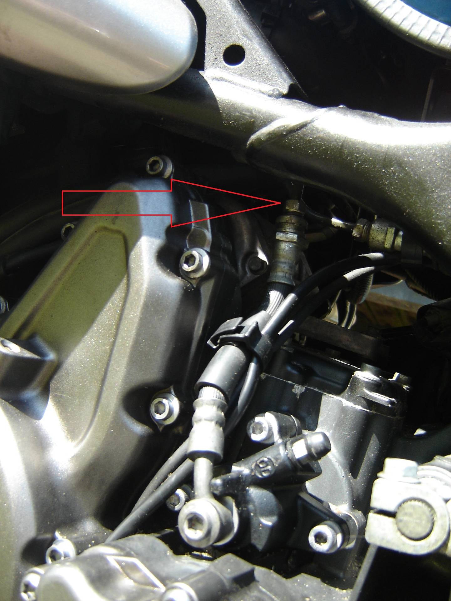 Die Schlauchverschraubung ( oder auch Quetschenverbinder ) wenn nichts mehr hilft, Motor und Rahmen schützen und zwei Rohrzangen angesetzt.