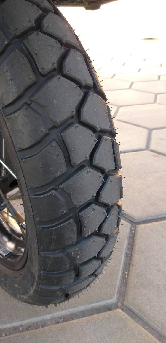Bis jetzt sind's knapp 2000km mit diesen Reifen. Der Grip auf leichtem Matsch, Schotterpisten, nassen Feldwegen, Gras und auf der Straße, sind bis jetzt hervorragend.