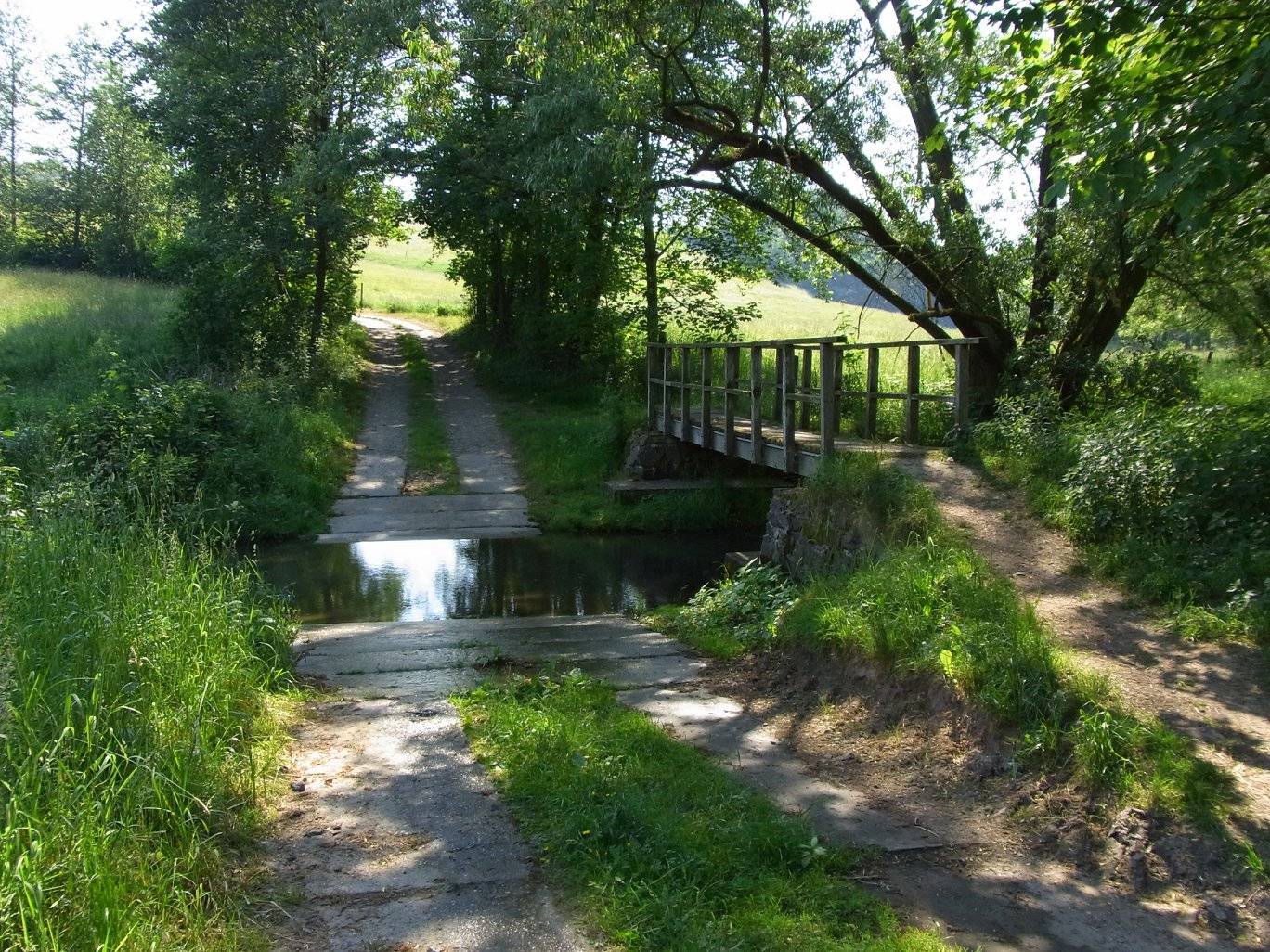 Furt durch den Auenbach bei Koltzschen nahe Colditz...Betonplatten durch den Bach...sauber und risikofrei, schöner Waldweg schliesst sich an...51.104246 , 12.839203