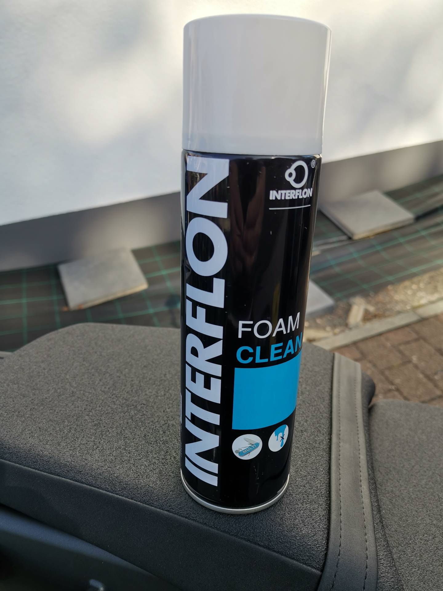 Das Interflon wird aufgesprüht, schäumt ein wenig auf und tropft nicht.