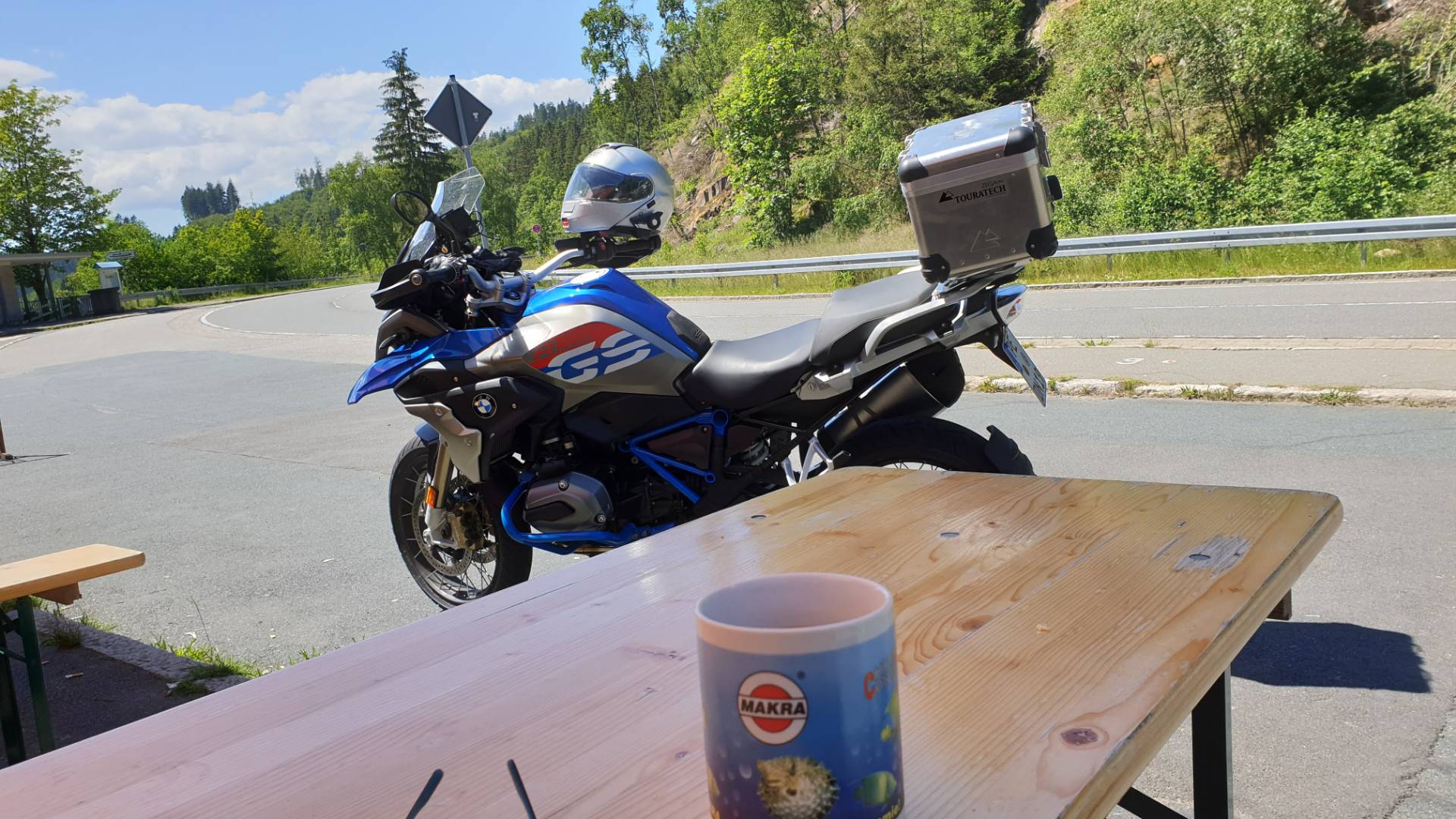 Das nenn' ich 'ne korrekte CI - Tasse und Motorrad farblich aufeinander abgestimmt!
