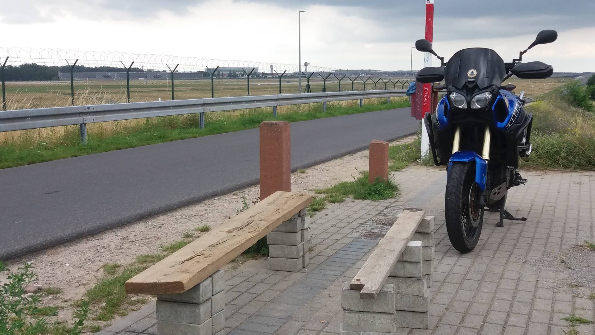 XT vor einer Bank. An der Magistrale, nach Dubrovnik, auf dem Weg nach Bar Montenegro