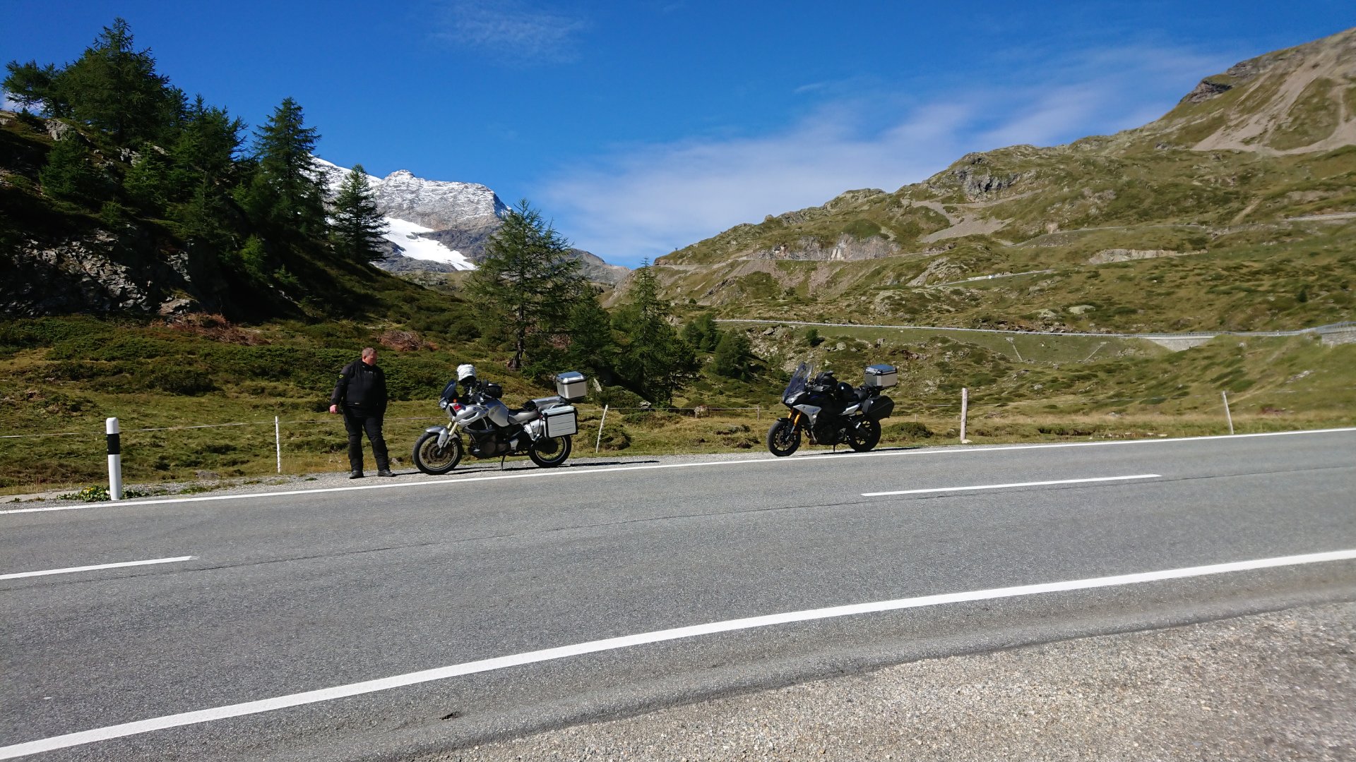 Lucky und ich sind über Bernina, Aprikapass und Passo du Crocedomini gefahren.