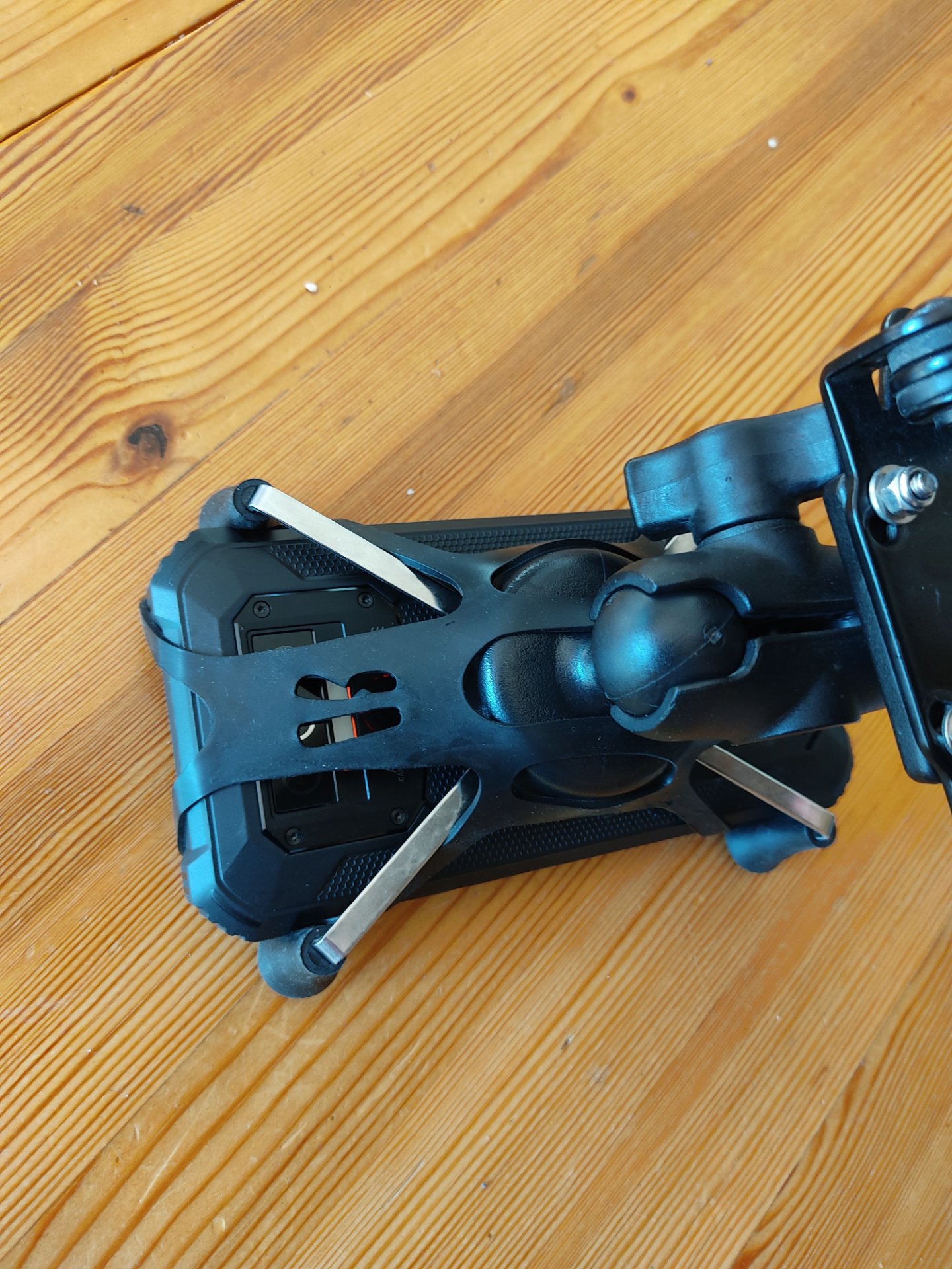 Derzeit habe ich auch das Oukitel WP5 dran um das mal auszuprobieren. Da sollte man beim Kauf des Halters auf die Dicke des Smartphones achten. Den Halter gibt es in zwei Versionen