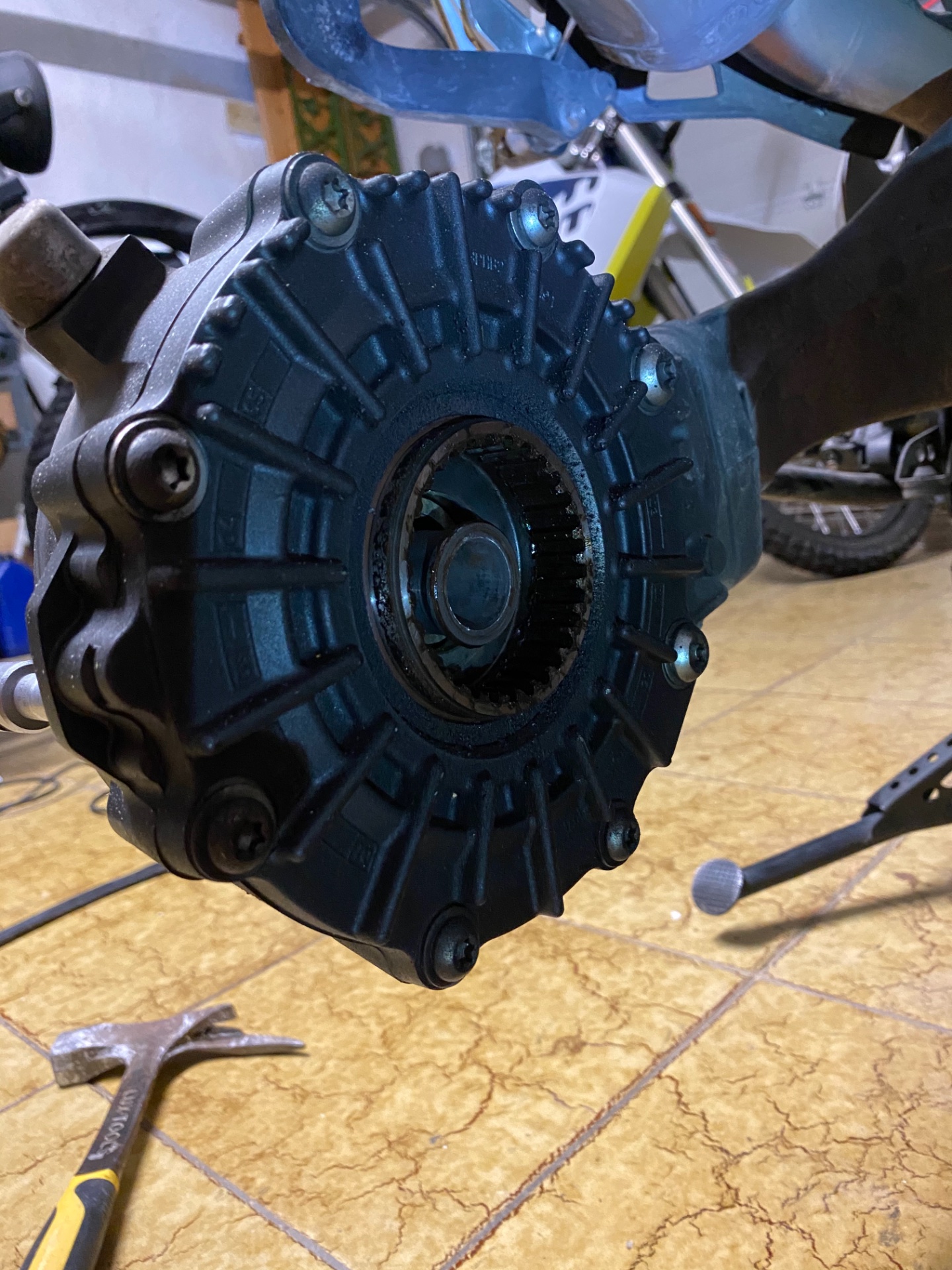 Habe das Hinterrad ausgebaut, bis auf etwas Dreck mit Ölnebel und etwas Schmierfett sehe ich nichts auffälliges am Kardangehäuse. Oder müsste da hinten alles blitzblank sauber sein?