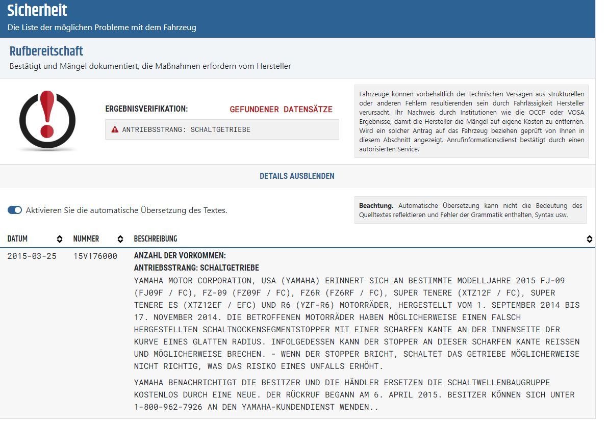 Ob diese Aktion erledigt ist kann dir Yamaha beantworten. Die Fahrzeughistorie ist bei denen normalerweise hinterlegt.