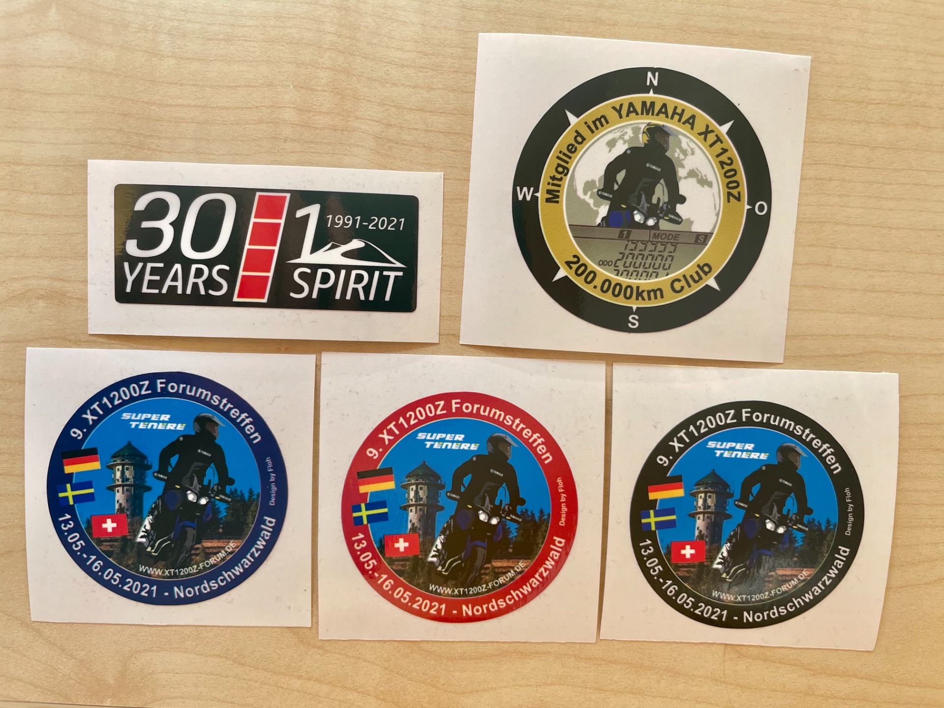 So die Aufkleber fürs Treffen konnte ich gestern abholen. Ich hoffe das es dieses Jahr klappt. Neben den Forumstreffen Aufkleber hab’s noch welche für Kilometerfresser @Franz und einige für mein 30 jähriges Tenere Jubiläum.
