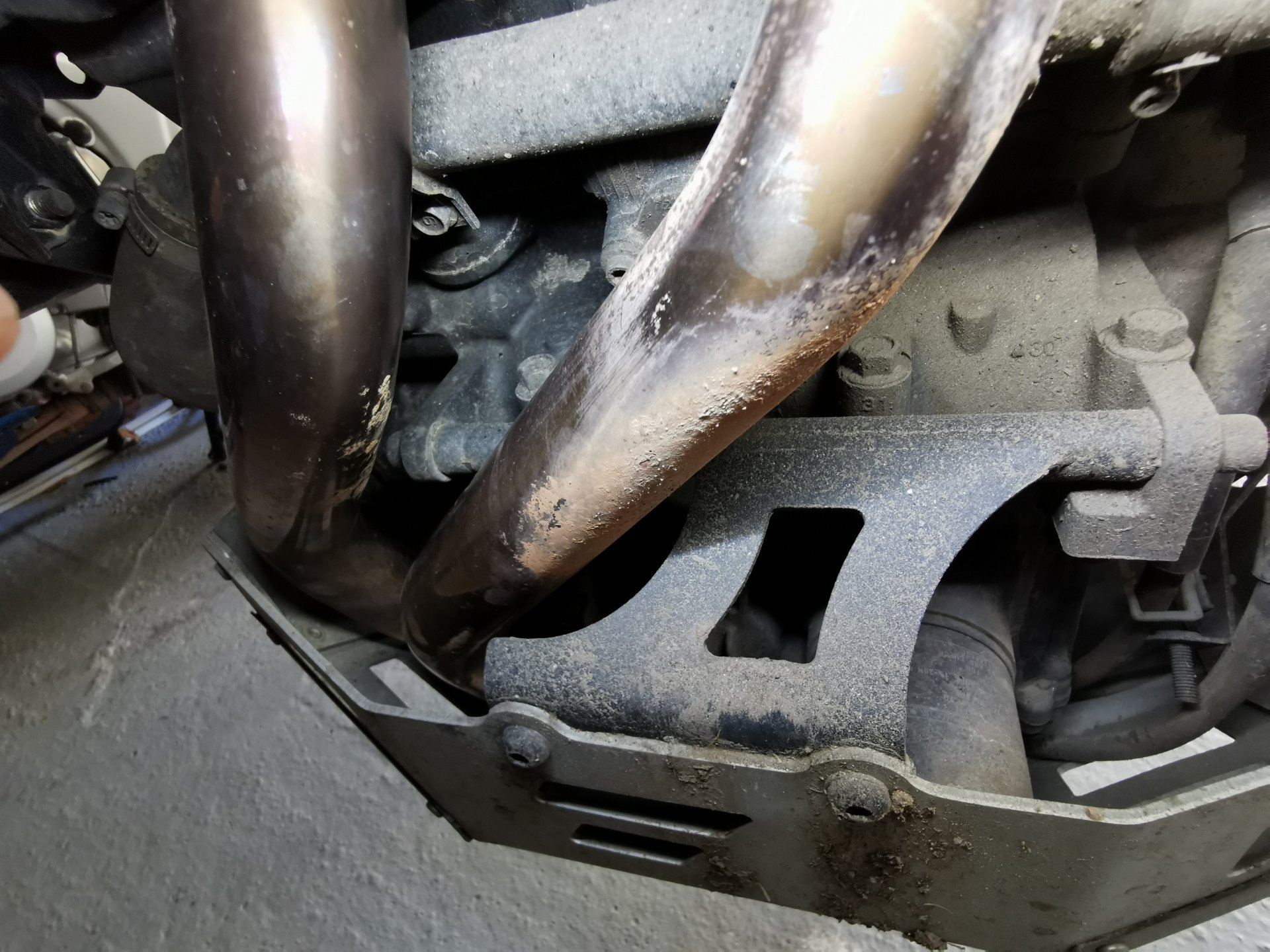 Von der Anbauanleitung auf YouTube macht es den Anschein, dass der Bügel vorne am Motor verschraubt wird unterhalb des Krümmers.