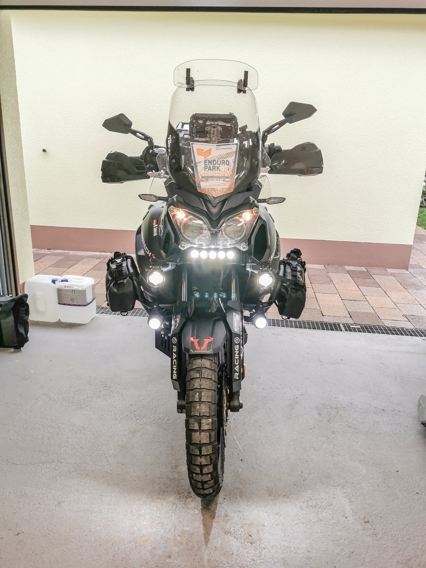 Motorschutzplatte, Sturzbügel und Zusatzleuchten