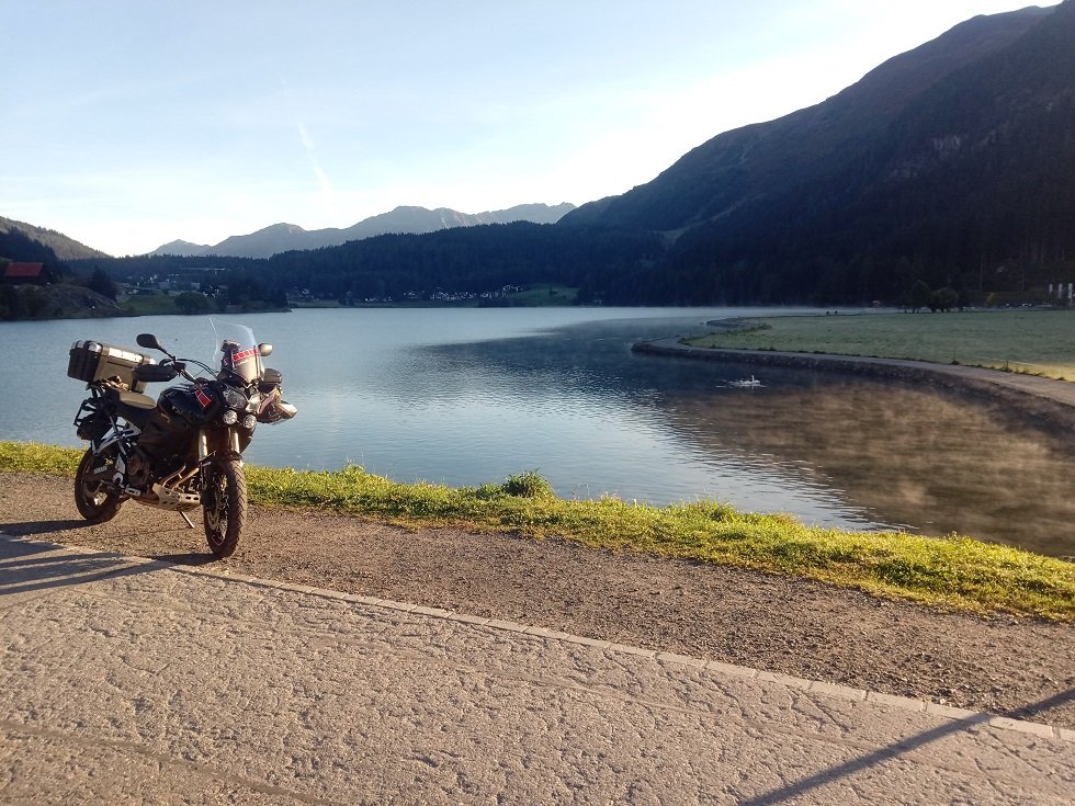 War schweinekalt da oben gegen halb neun (Eis auf den Autos) - daher hab ich mir den Flüelapass gleich mal aus dem Kopf geschlagen. War aber auch 'ne saudoofe Idee, nachdem eben Schnee bis 1500m angesagt war... :roll:
