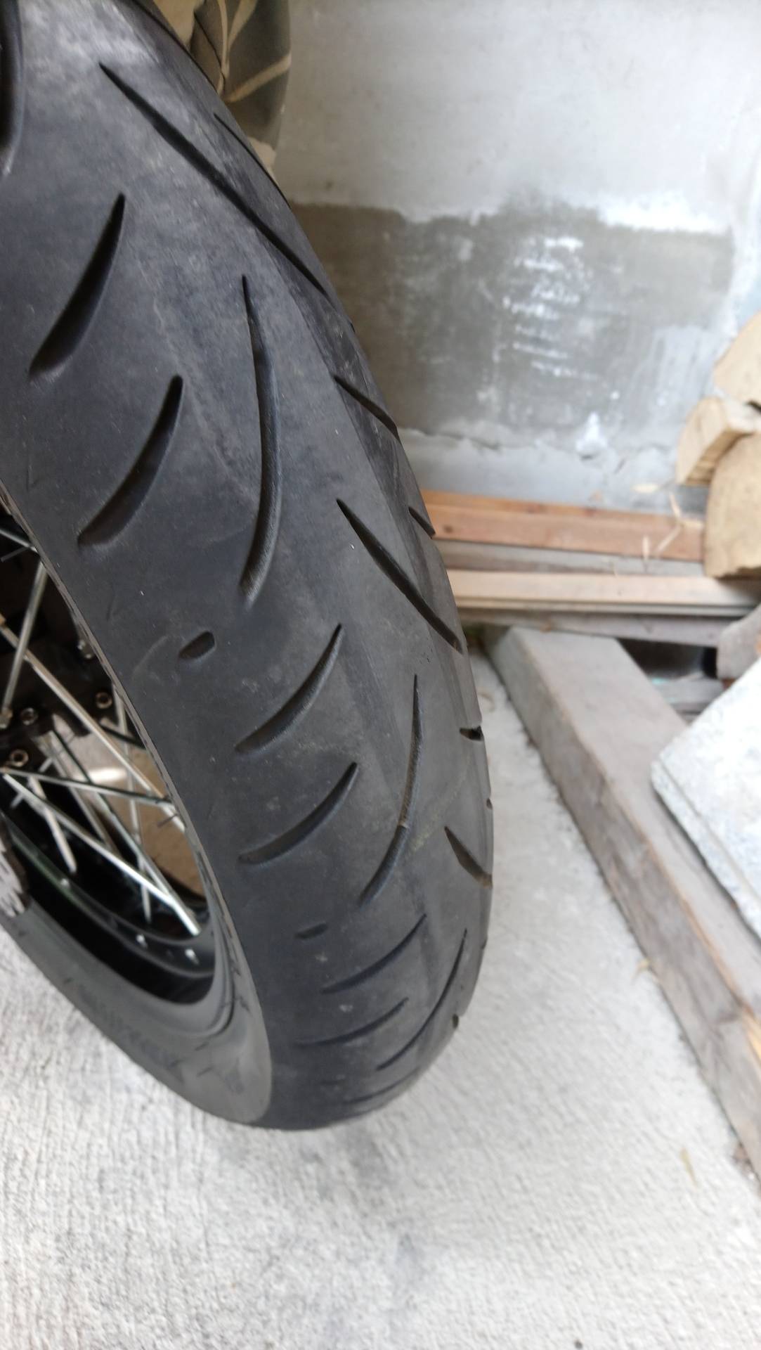 Der Hinterreife ist an der Verschleissgrenze, der Vorderreifen hat mittig noch gut 2mm, seitlich etwas weniger.