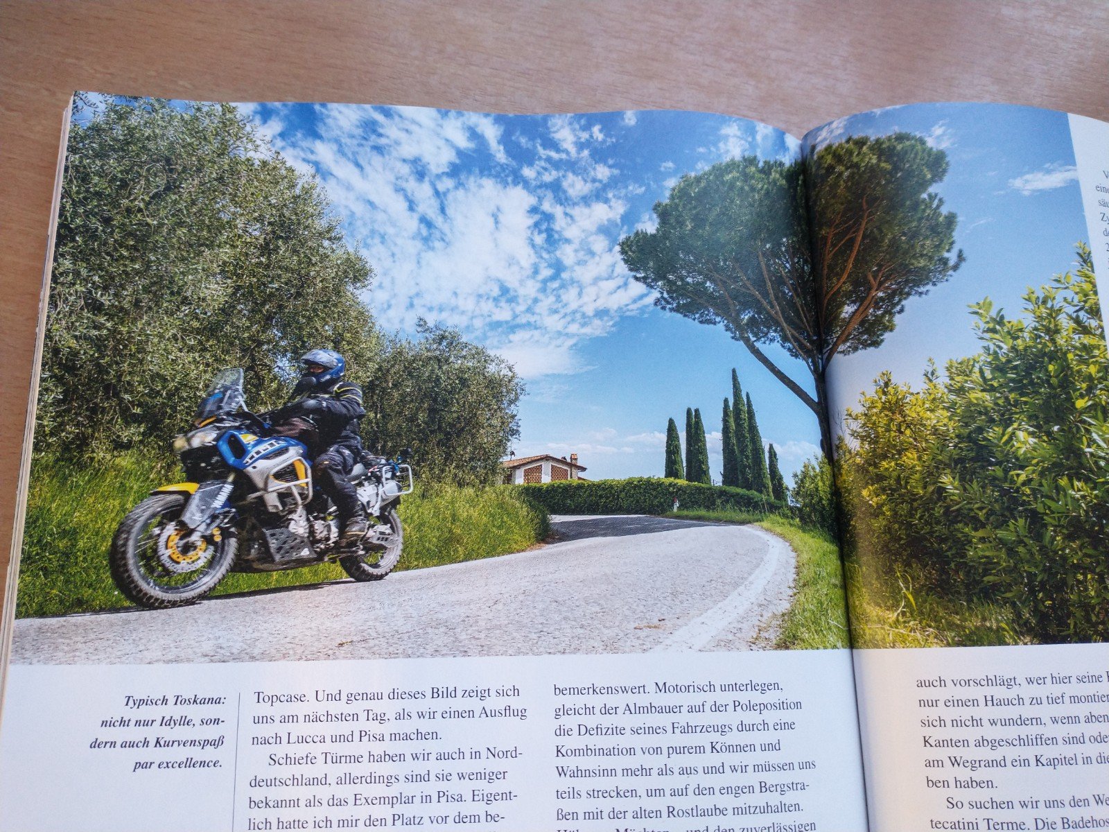 Ist ja auch nicht so häufig: Mit drei XTs durch die Toskana. Unser Motorrad wird nur am Rande erwähnt, ist aber immerhin Fotomittelpunkt - manchmal. Entdeckt im Tourenfahrer Mai 22.