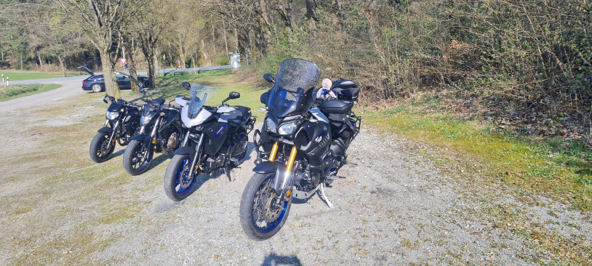 Heute das erste Mal seit vielen Jahren mit der hübschesten aller Gattinen mal wieder ne kleine Runde gefahren. Zwar nur knapp 100 km aber immerhin mal wieder überhaupt ein paar km. Sie kann es noch, obwohl die Freewind langsam in die Jahre kommt. Im nächsten April ist Abgabetermin für ihre Masterarbeit. Der ideale Zeitpunkt für ne tiefergelegte Tracer 7 GT als Belohnung, oder was meint Ihr?