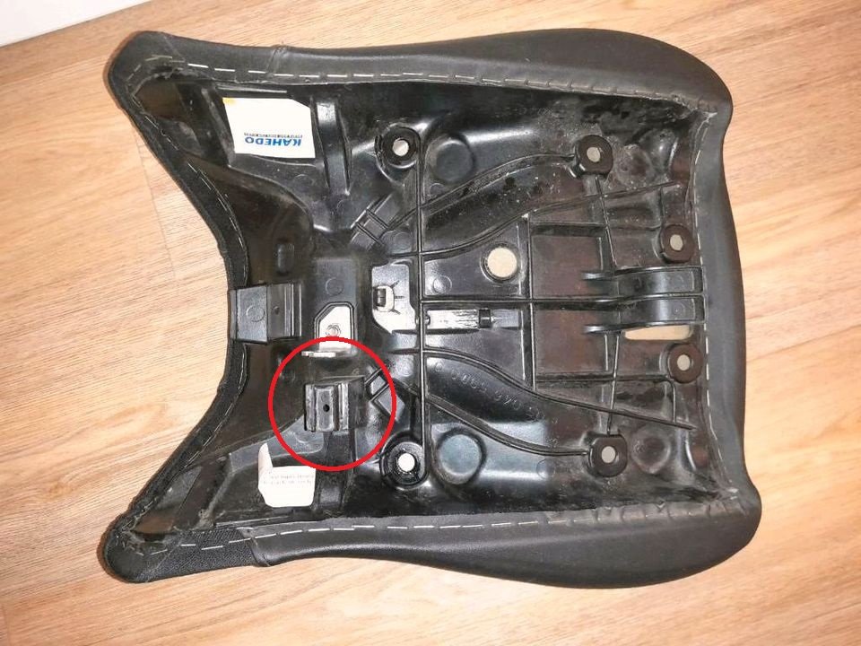 Bei meiner XT ist von Touratech die Komfortsitzbank verbaut und dort ist leider ein Plastikteil abgebrochen, welches sich dann während der Fahrt verabschiedet hat. Ich habe mir jetzt, dank eines 3D Druckers ein neues Teil gebastelt, jedoch fehlt mir, für die genaue Einpassung, das Höhenmaß. Könnte eventuell jemand von euch unter die Bank schauen und mir die Höhe des abgebrochenen Teiles mitteilen. Da ein Bild mehr als 1000 Worte sagt, habe ich ein Foto der Unterseite und des benötigten Teiles angefügt.