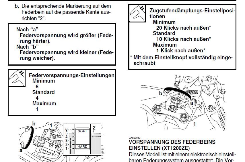 Die Einstelldaten (Vorspannung, Zugstufe; Druckstufe ist bei diesem Federbein nicht vorhanden) habe ich beigefügt.