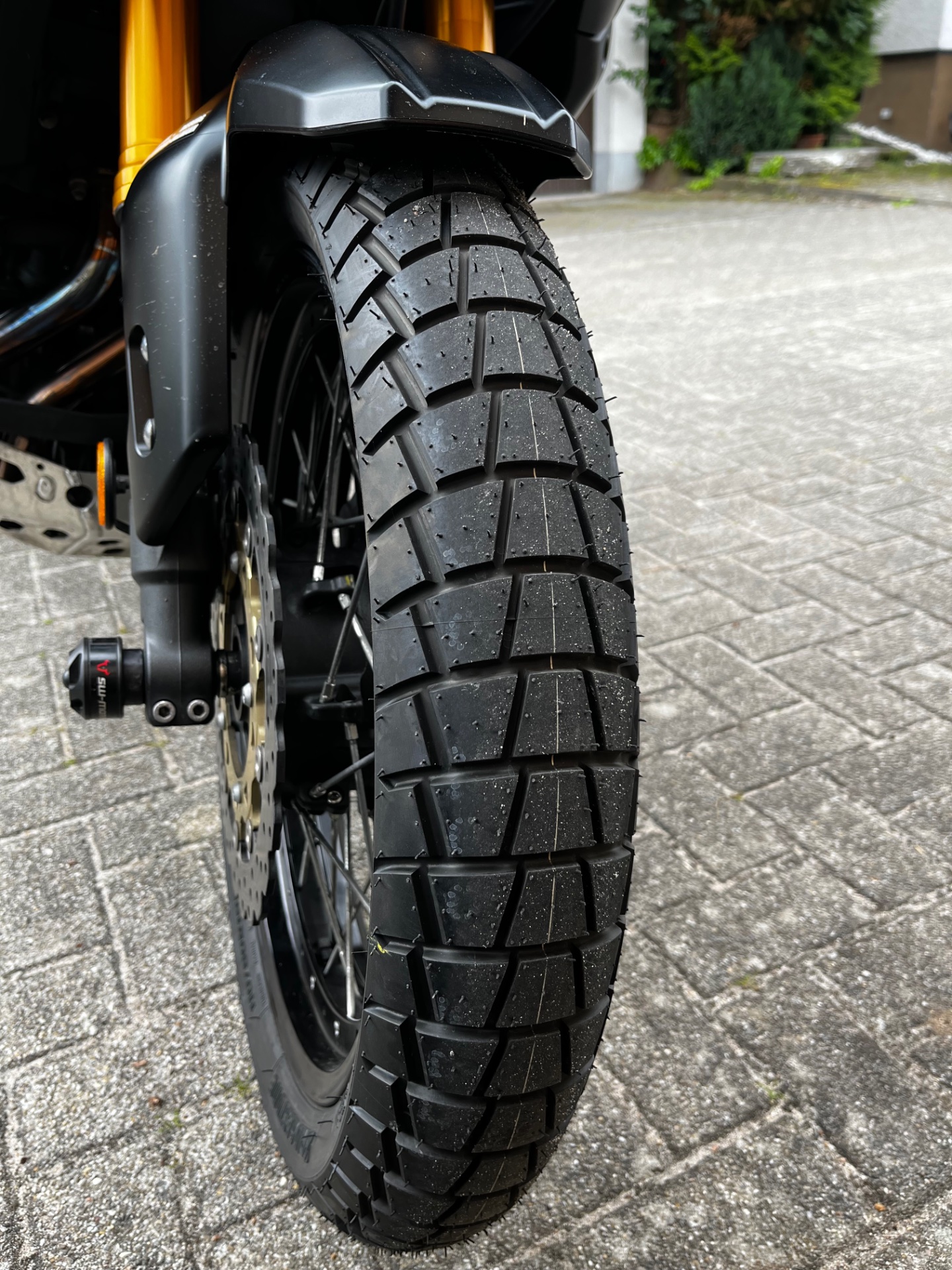 Doch inzwischen habe ich Gefallen gefunden am AT41. Er passt sehr gut zur Dicken, und bleibt auch in Schräglage schön präzise. Hat durchaus Potential zum neuen Lieblingsreifen.