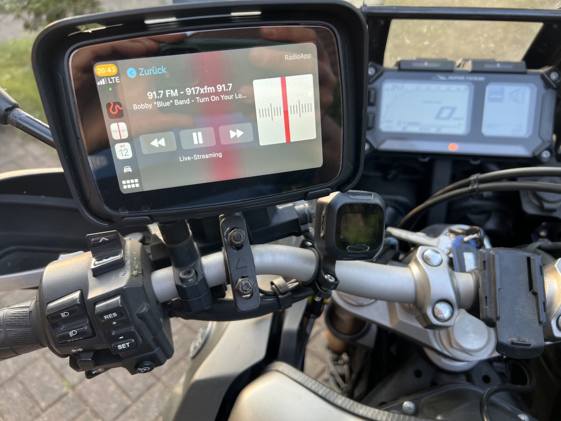 Montiert habe ich es links am Lenker (siehe Bild 1+2 weiter oben), dort wo vorher das Garmin war. RAM-Mount passte (die Kugel).... ich musste gar nicht alles abbauen…