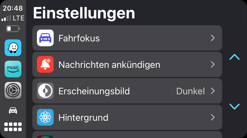 Die Apps kann man in den CarPlay-Settings des iPhones sortieren und ein-/ausblenden, wie man möchte: |