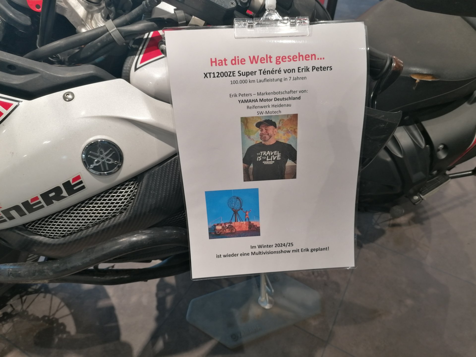 bei Yamaha-Gärtner in Dohna ist am kommenden Samstag (wie wahrscheinlich überall) Saisoneröffnung. Dort ist mir ein Programmpunkt besonders aufgefallen: "13:00 Uhr XT1200ZE von Erik Peters"!