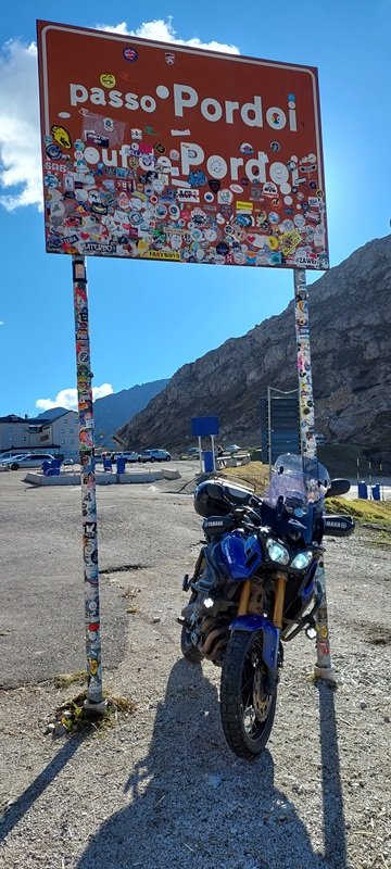 Was für ein genialer Fahrtag heute - quasi kein Verkehr. Wenn mir heute zwanzig Motorräder begegnet sind, waren es viele. Am Passo di Giau standen zwei Gruppen, Österreicher und Italiener, das waren in Summe vielleicht 12 - 15 Maschinen. Selbst in 2.000 m ünN deutlich zweistellige Temperaturen, einige Baustellen(ampeln), sonst nix los. Perfekt!