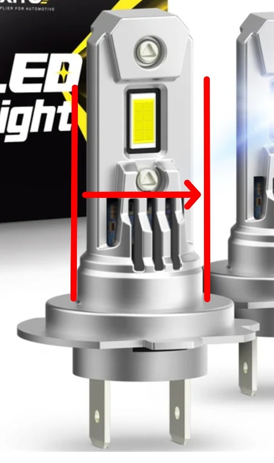 Welche H7 LED auch immer Ihr kauft, Ihr müsst drauf achten, dass sie direkt am Sockel - bis ganz nach unten! - genauso schmal sind wie die von Auxito hier: