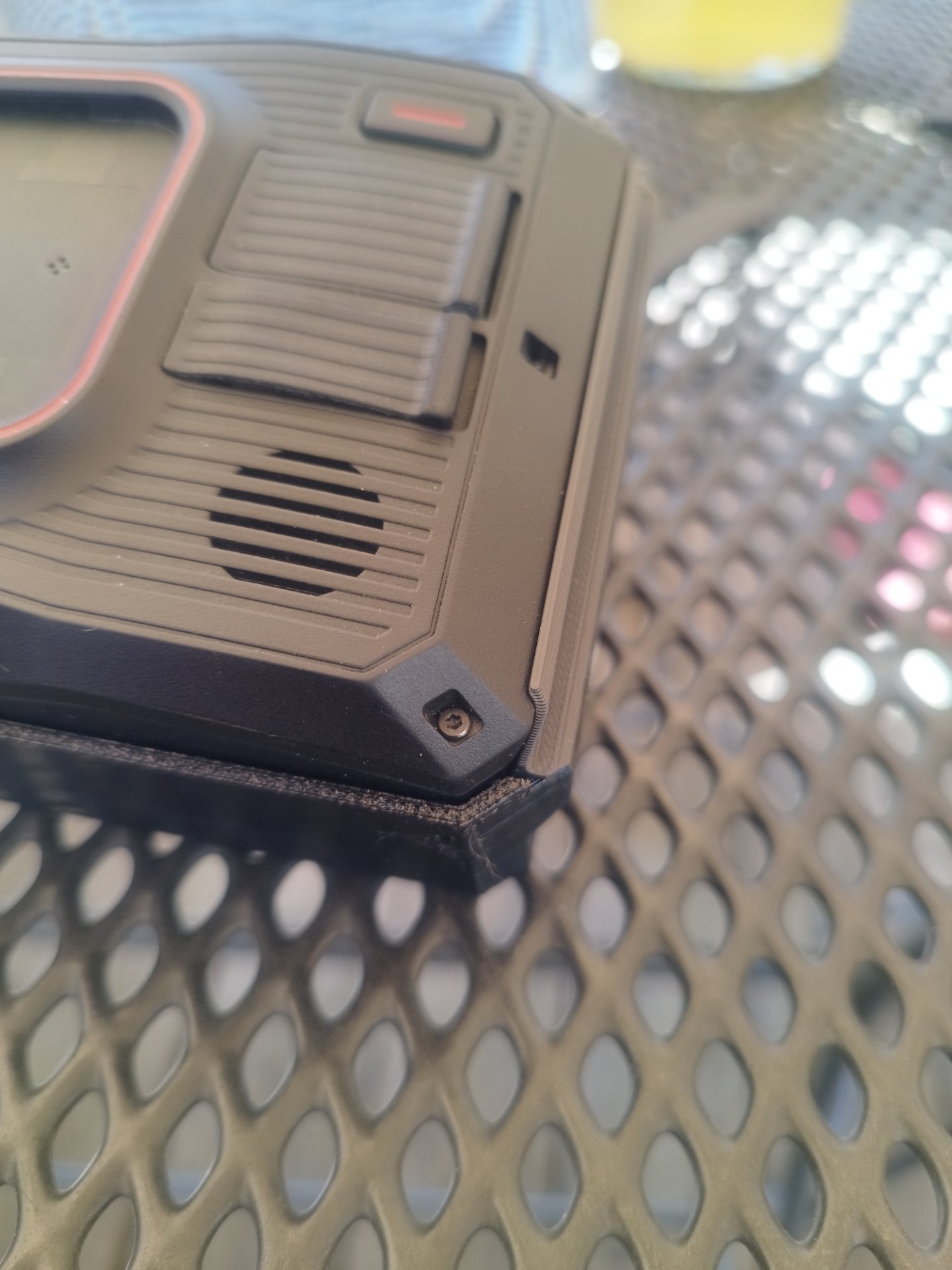 Dass es drei Teile sind, Blende und zwei Klemmen, liegt am Druckverfahren und der damit verbundenen Faserausrichtung. So brechen die seitlichen Klemmen nicht so leicht.