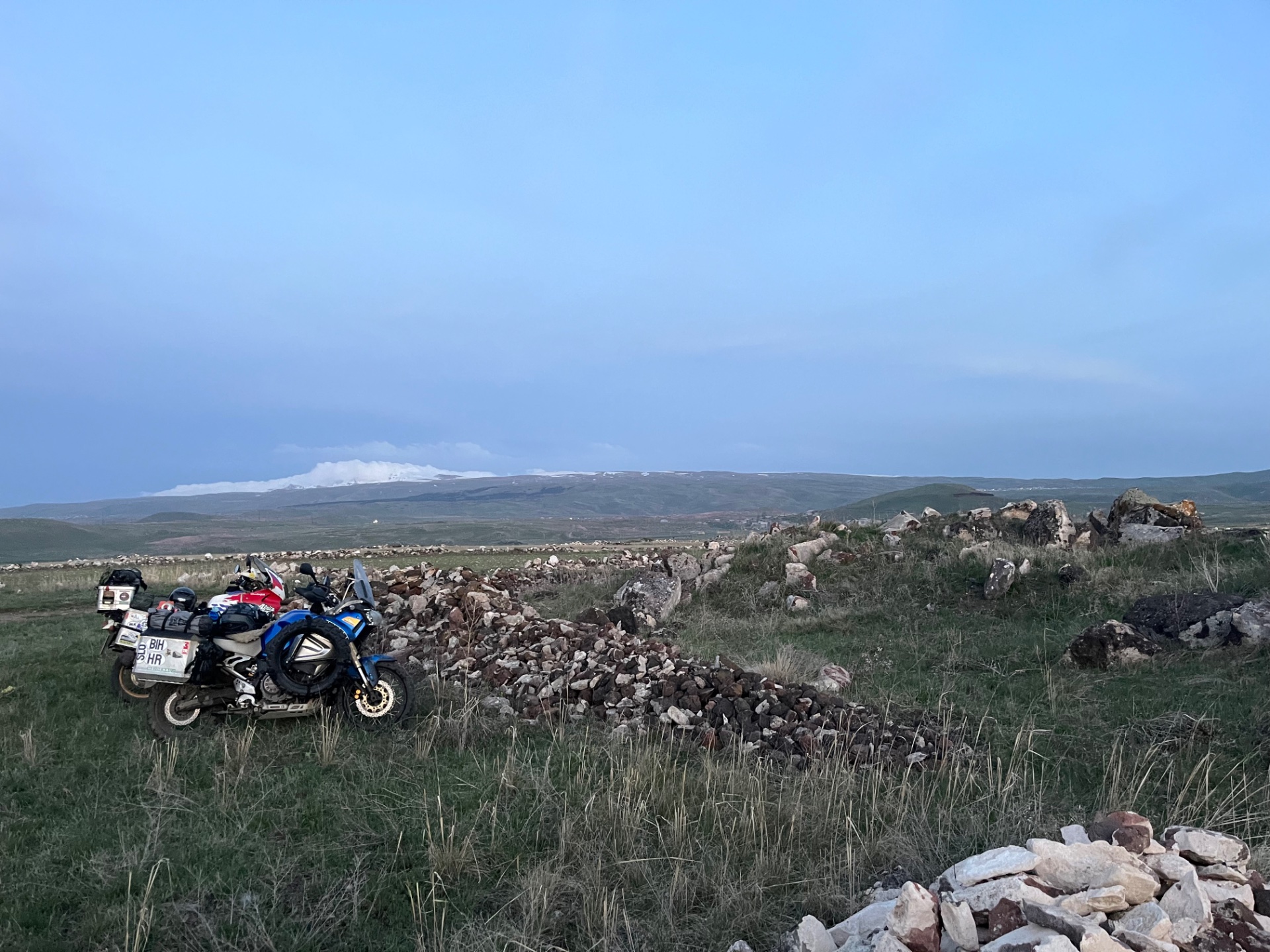 Gestern Abend beim Bier beschlossen heute geht's schnell auf Armenien für'n Aufkleber am Koffer. Naja 3 h an der Grenze aber so what. Jetzt irgendwo im nirgendwo Zelt aufgebaut und was gegessen. Morgen weiter und dann wieder Mal Kurs Nord auf Russland. Wir wollen ja schließlich noch weiter und weiter und weiter und... Naja wie es so ist.