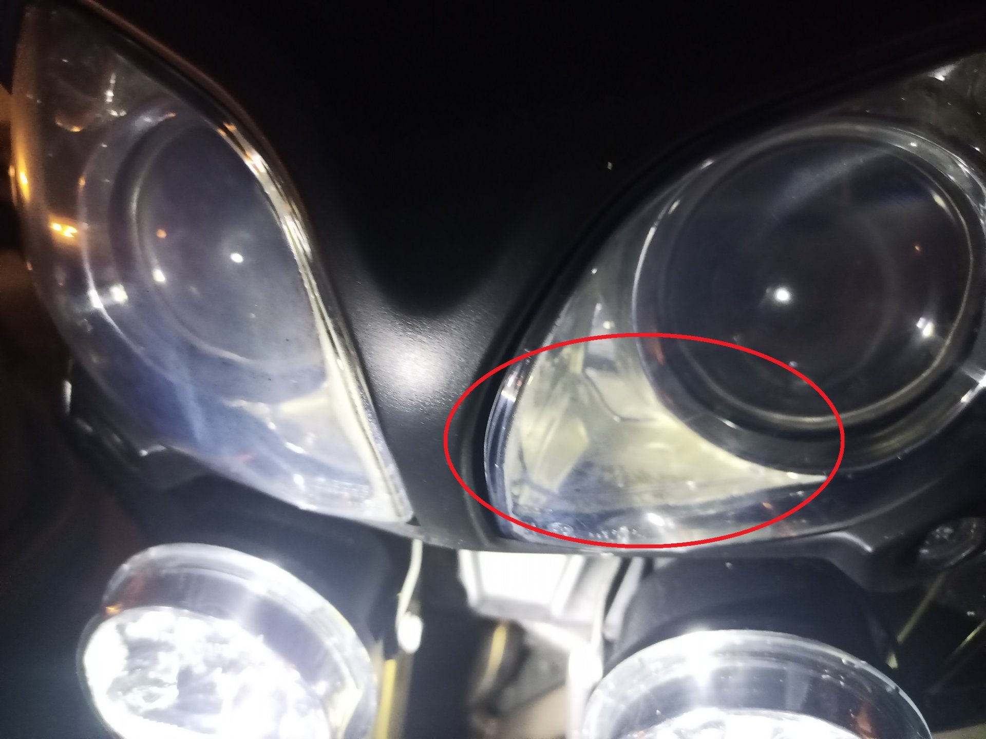 Auf einem Foto ist das ("Trübe") nicht gescheit einzufangen, ein wenig trüb wirken die "Gläser" vor dem Scheinwerfer wirklich. Aber das ist meiner Meinung nach "Ansichtssache" - und ändert sich je nach Blickwinkel (und damit Hintergrund, dem Innern der ganzen Leuchterei). Vielleicht sind meine Augen auch nicht mehr die besten.