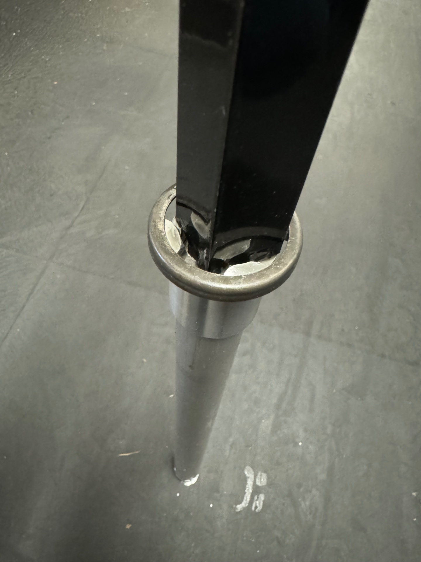 Damit kann man nach Entnahme der Feder und Federführung (weißes Kunststoffteil) von innen gegenhalten. Ich habe den Gabelfuß mit 8er Inbus fixiert und dann mit einem Gabelschlüssel das Alurohr gedreht. Geht 1a.