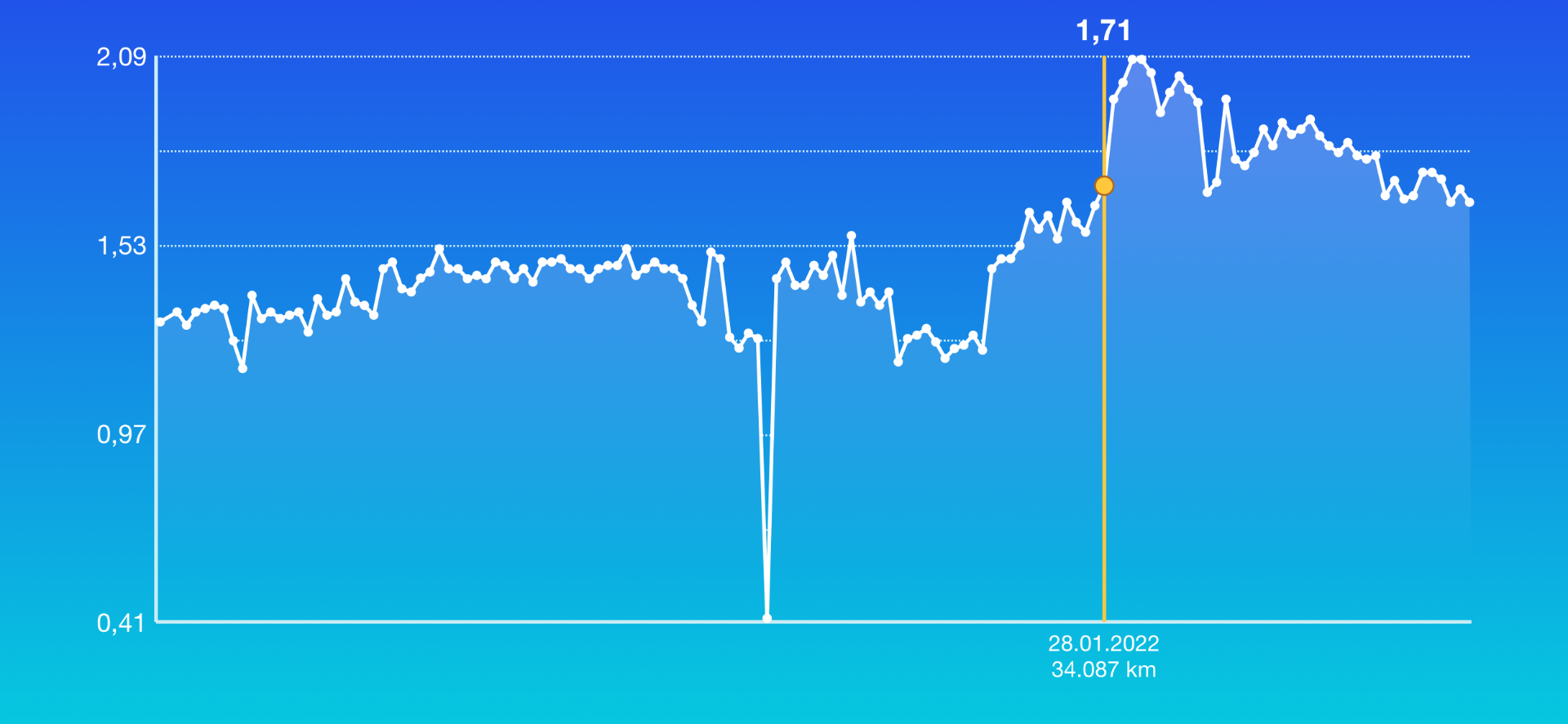 War ich ursprünglich der Meinung, durch die allgemein tolerierte Tachabweichung bzgl. der Geschwindikkeit würde auch mehr Kilometer auf dem Tacho entstehen als effektiv gefahren, wurde ich dann eines Besseren belehrt.