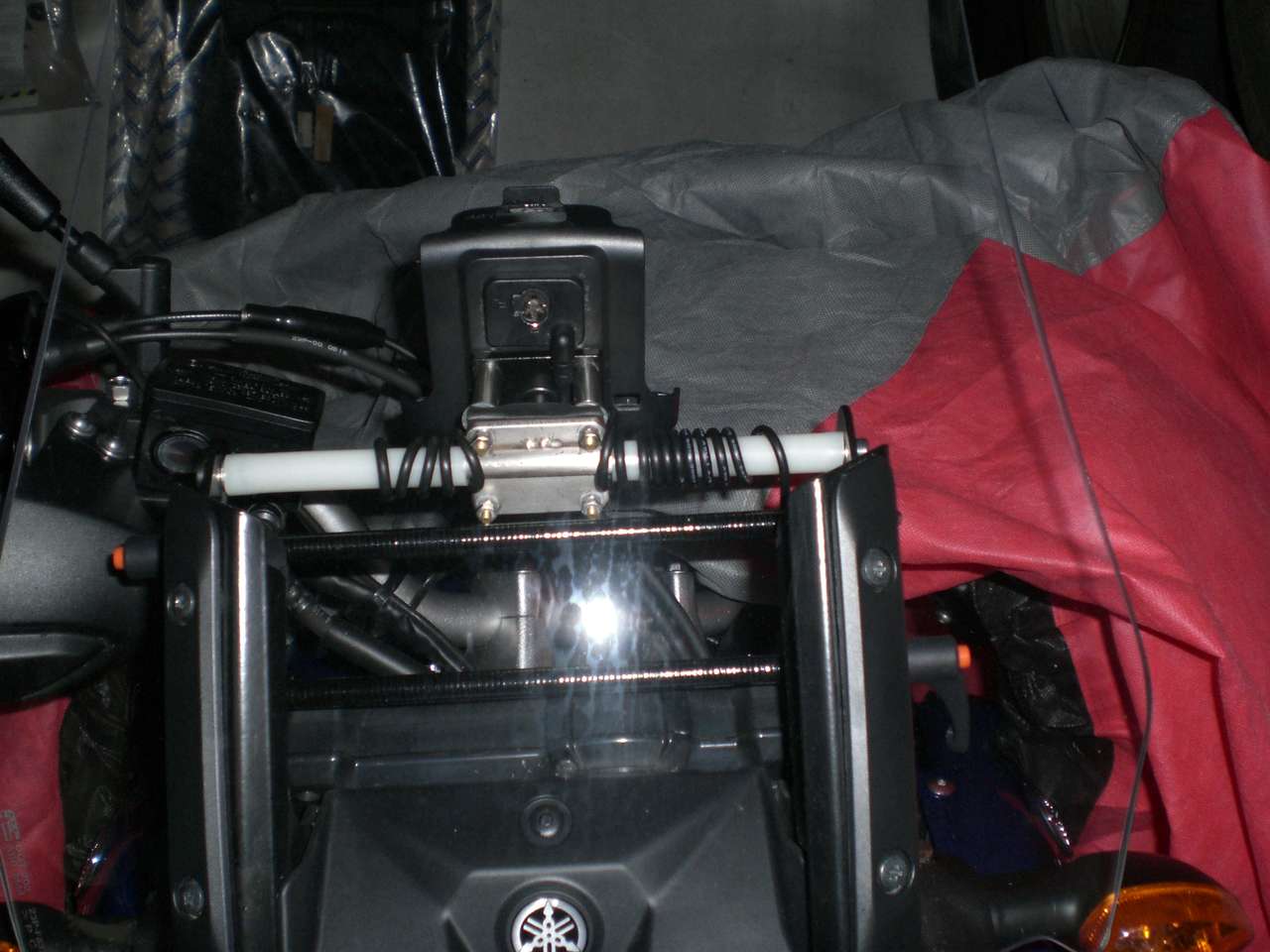 Die Windschutzscheibe muss ab und die Schrauben vom Scheinwerfer müssen gelöst werden und dann kommt der Halter zwischen Scheibe und Tacho.
