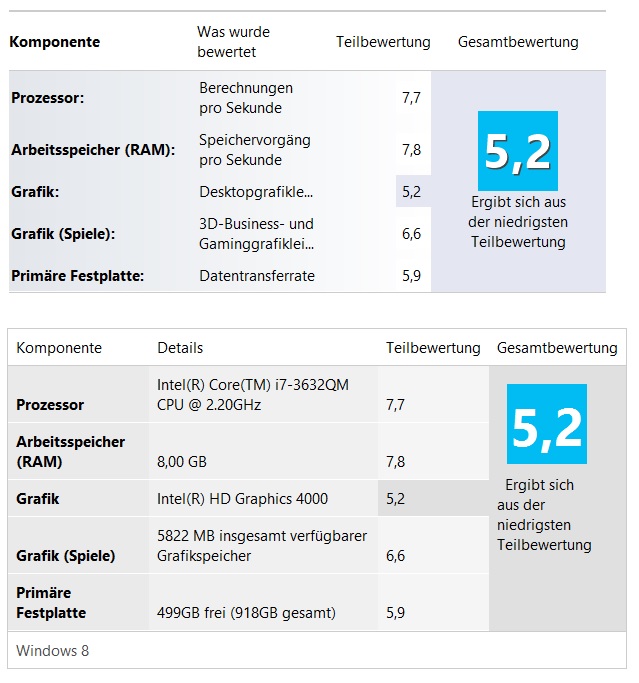 Ein normale SATA Platte wird meistens die Wert 5.9 oder weniger bringen, nur ein SSD kann diese Wert erhöhen.