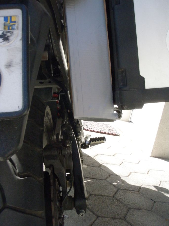 bei der first edition kannst du RECHTS nur 7 cm dahinterpacken, habs ausprobiert. beim mit Klebeband abgedeckten Versuch mit Karton hat noch der Anschluss des Bremssattels gestreift !