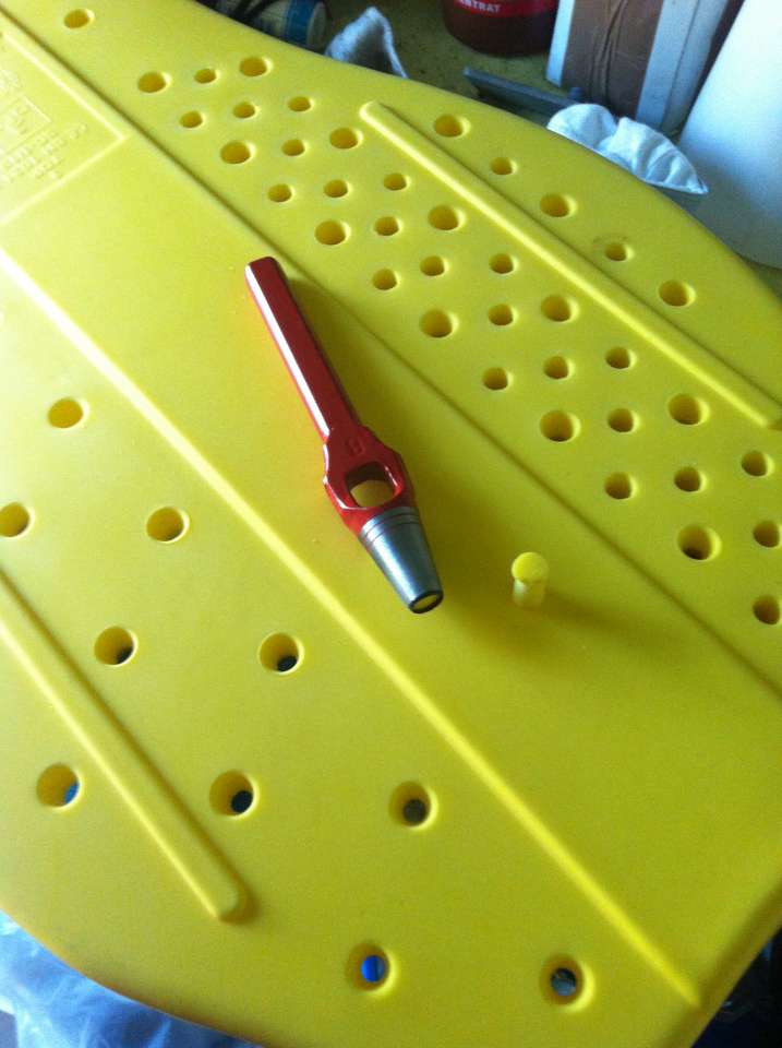 BTW. Ich habe meinen Rückenprotektor zum Käse umgestaltet, indem ich mit einer 8 mm Lochpfeife etliche zusätzliche Belüftungslöcher hineingestanzt habe (s. Bilder vorher = Seite mit wenigen Löchern vs. nachher),
